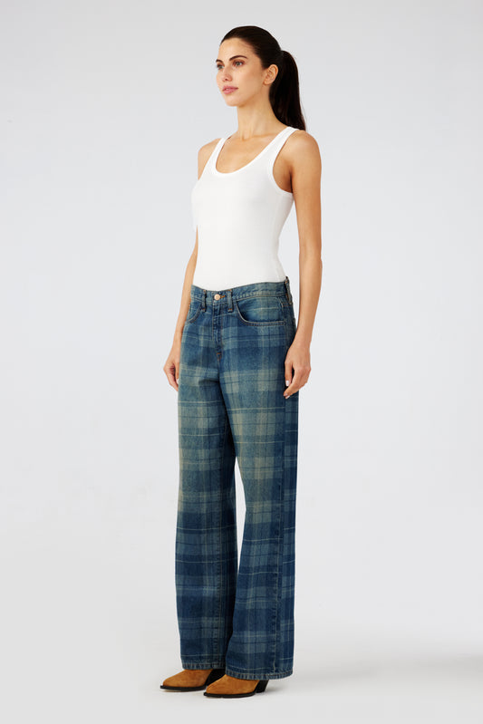 Sparrow Mid-Rise Baggy Jean - Tartan Medium Indigo