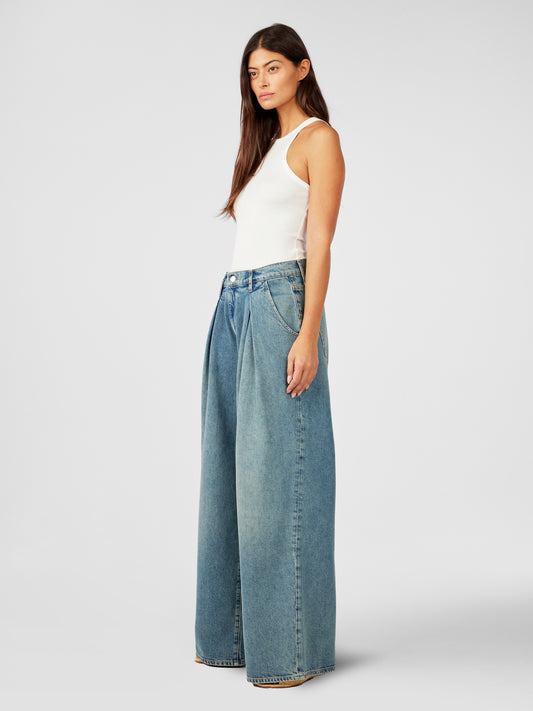 Linda Mid-Rise Pleated Wide Leg - Dusky Medium Indigo
