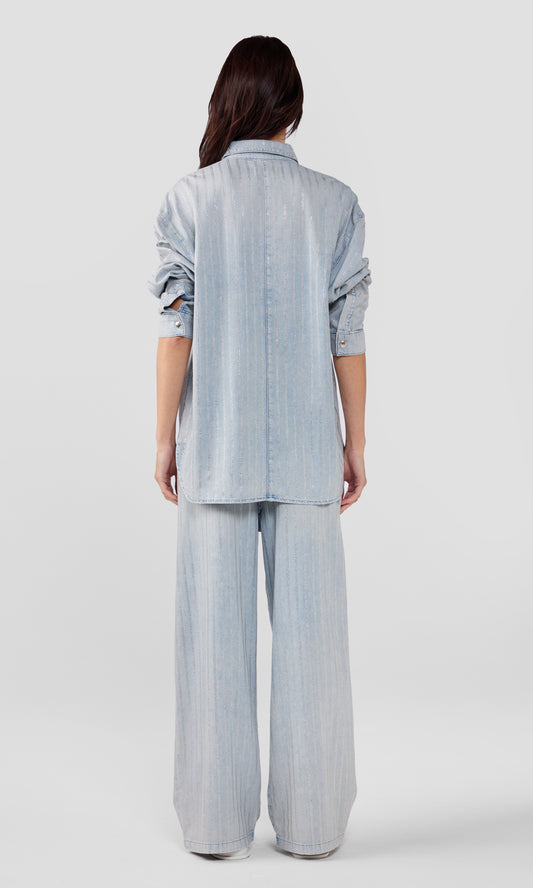Ms. Sofiane Classic Denim Shirt - Light Indigo Crystal Pin-Stripe