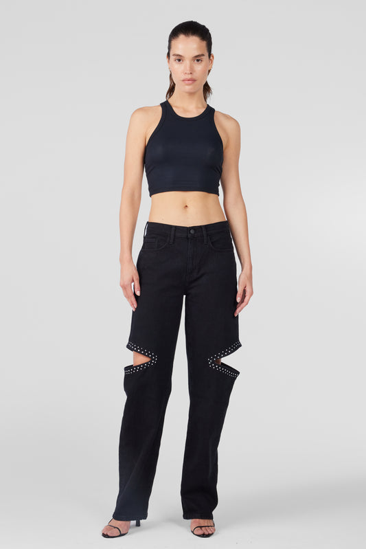 Stoned Aubrey Mid-rise Cut-out Straight Leg - Crystallized Onyx Black